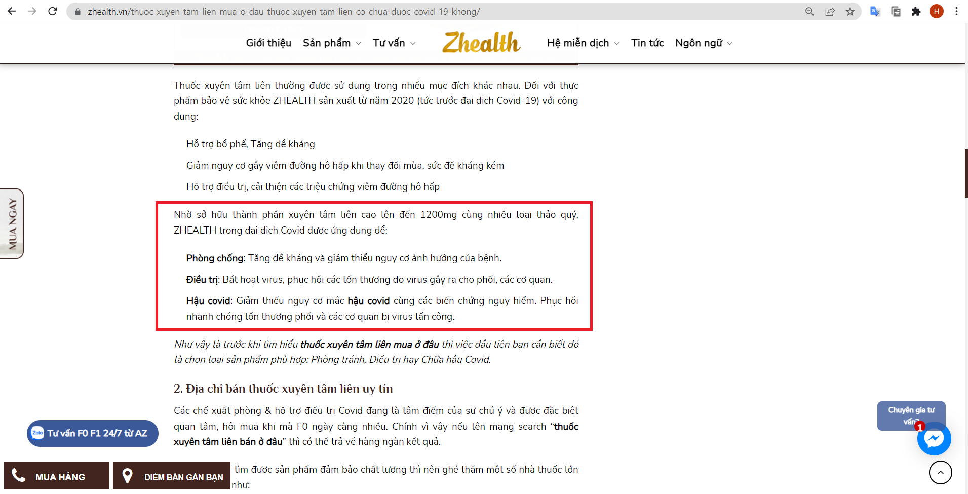 Tuy nhiên, với những thông tin về công dụng của sản phẩm Zhealth như: Triệt để tiền hậu Co-vy, thanh lọc phổi, phục hồi tế bào bị tổn thường, diệt virus, ngăn ngừa virus sản sinh biến chủng mới, ngăn ngừa và điều trị hậu Covid – 19, .... mà các trang mạng xã hội, website, sàn thương mại điện tử liên tục “nhấn mạnh” sẽ khiến người tiêu dùng lầm tưởng sản phẩm này là thuốc và sẵn sàng chi tiền để mua sản phẩm.