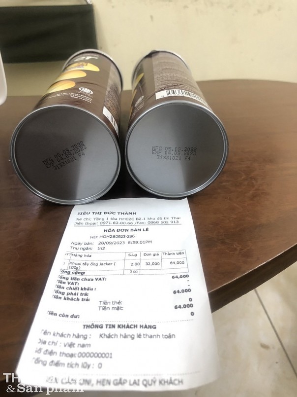 Cụ thể, theo anh T. cư dân Khu đô thị mới Thanh Hà cho biết: “Ngày 28/9/2023, tôi có mua 2 sản phẩm Khoai tây ống jacker (100g) tại siêu thị Đức Thành (Cơ sở 7: Tầng 1, Tòa nhà HH02-C, Khu đô thị mới Thanh Hà, Quận Hà Đông, Tp. Hà Nội. Khi về nhà tôi có kiểm tra thông tin về sản phẩm thì khá bất ngờ sản phẩm Khoai tây ống jacker mà tôi mua đã bị hết hạn (ngày hết hạn sản phẩm 04/09/2023). Tôi không hiểu vì lý do gì một siêu thị lớn có chuỗi hệ thống phủ khắp Hà Nội mà vẫn để xảy ra sự việc này? Và không hiểu việc quản lý siêu thị ra sao khi sản phẩm hết hạn hẳn 24 ngày rồi mà siêu thị này không hề hay biết.?.