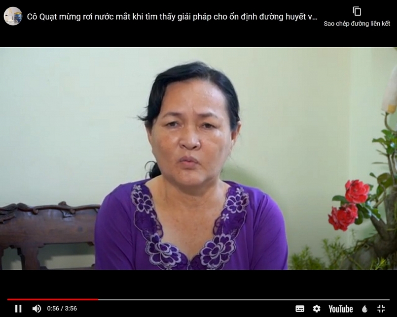 | Bà Hồ Thị Quạt(làm giúp việc ở TP Hồ Chí Minh), chia sẻ thông tin uống Sữa tiểu đường Diasure sau hai tháng thì đường huyết từ 18 chấm(mmol/l) xuống còn 8 chấm(mmol/l)… |
