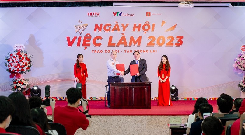 Ngày hội việc làm VTV College lần thứ 2 – năm 2023 diễn ra thành công tốt đẹp, không chỉ mở rộng mạng lưới liên kết chặt chẽ giữa Trường Cao đẳng Truyền hình với các doanh nghiệp mà còn mang lại nhiều cơ hội việc làm hấp dẫn cho học sinh, sinh viên nhà trường.