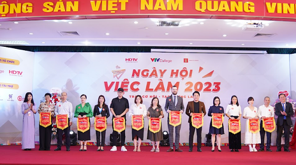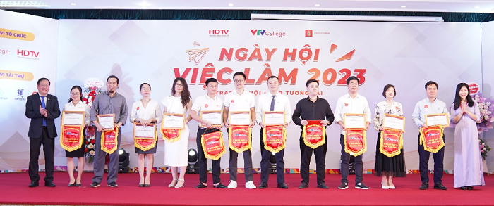 | Các cơ quan, đơn vị nhận chứng nhận và cờ lưu niệm tham gia "Ngày hội việc làm VTV College lần thứ 2 – năm 2023". |