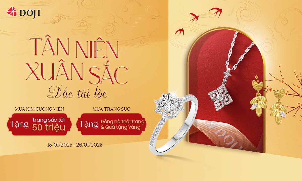 Hòa trong không khí xuân rộn ràng, DOJI giới thiệu chuỗi ưu đãi đặc biệt “Tân niên xuân sắc - Đắc tài lộc” từ 15/01 đến hết 26/01/2025 giúp khách hàng tô điểm rạng ngời diện mạo, mang theo nhiều tài lộc và vô vàn niềm hạnh phúc.