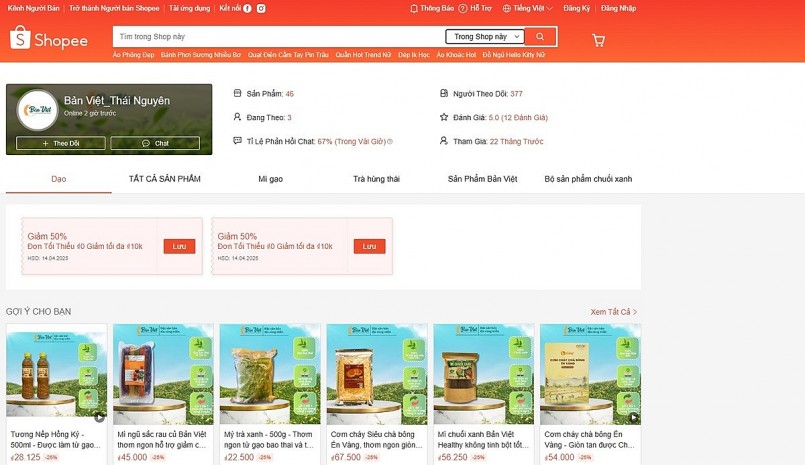 Thông quan gian hàng này, người tiêu dùng có thể dễ dàng mua sắm những sản phẩm nông sản chất lượng, đặc trưng của Thái Nguyên ngay trên Shopee một cách nhanh chóng, tiện lợi và đảm bảo uy tín.