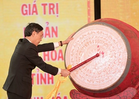 | Phó Chủ tịch UBND tỉnh Thanh Hoá Đầu Thanh Tùng đánh trống khai hội. |