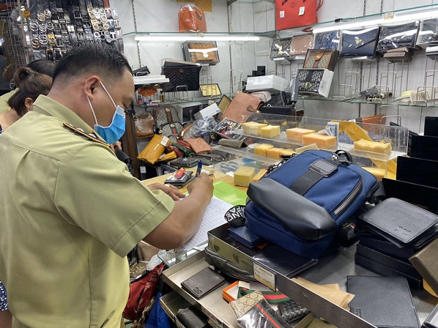 Còn tại chợ Bến Thành, lực lượng chức năng kiểm tra 10 quầy hàng, phát hiện hơn 1.200 sản phẩm giả, có tổng trị giá hàng hóa 117.945.000 đồng. Trong đó, có 642 sản phẩm là đồng hồ đeo tay, mắt kính các loại, nhãn hiệu Rolex, Longines, Gucci, Montblanc, Chanel, Rayban, Burberry, Dior, Cartier, Omega; 634 sản phẩm là túi xách, túi đeo, thắt lưng, ví (bóp) các loại, nhãn hiệu Montblanc, Prada, Gucci, Yves Saint Laurent, MCM, Dior, Hermes, Goyard, Chanel.