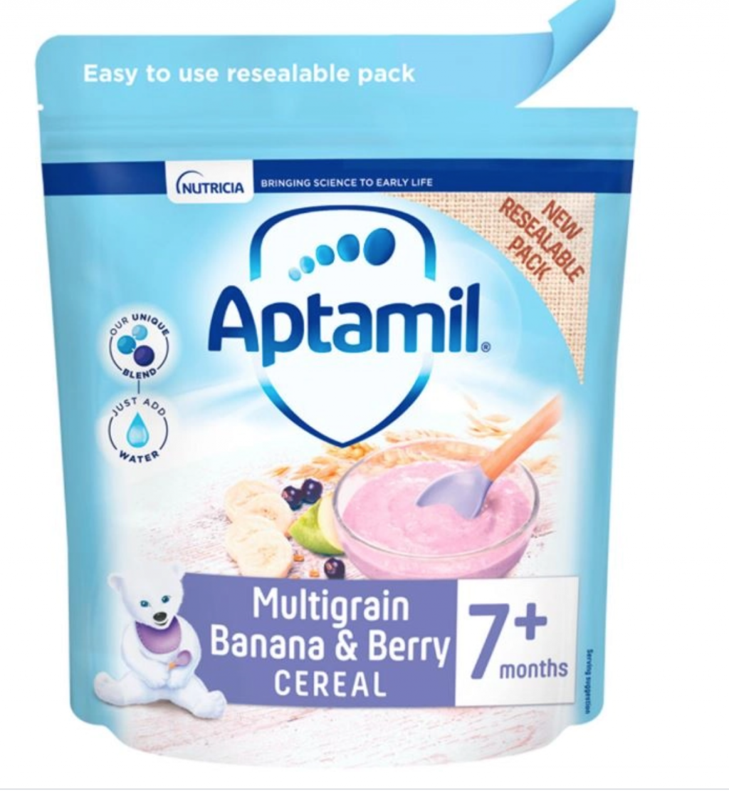Cơ quan tiêu chuẩn thực phẩm của Anh (FSA) thông báo Công ty Nutricia tại Anh đang thu hồi Bột ngũ cốc Aptamil Multigrain Banana and Berry Cereal cho trẻ từ 7 tháng tuổi (Aptamil Multigrain Banana and Berry Cereal 7+ months) vì có chứa những mẩu nhựa nhỏ màu xanh lam. Sự có mặt của mẩu nhựa trong sản phẩm này sẽ gây mất an toàn cho trẻ nhỏ. Cơ quan FSA đã ban hành Thông tin thu hồi về sản phẩm này.
