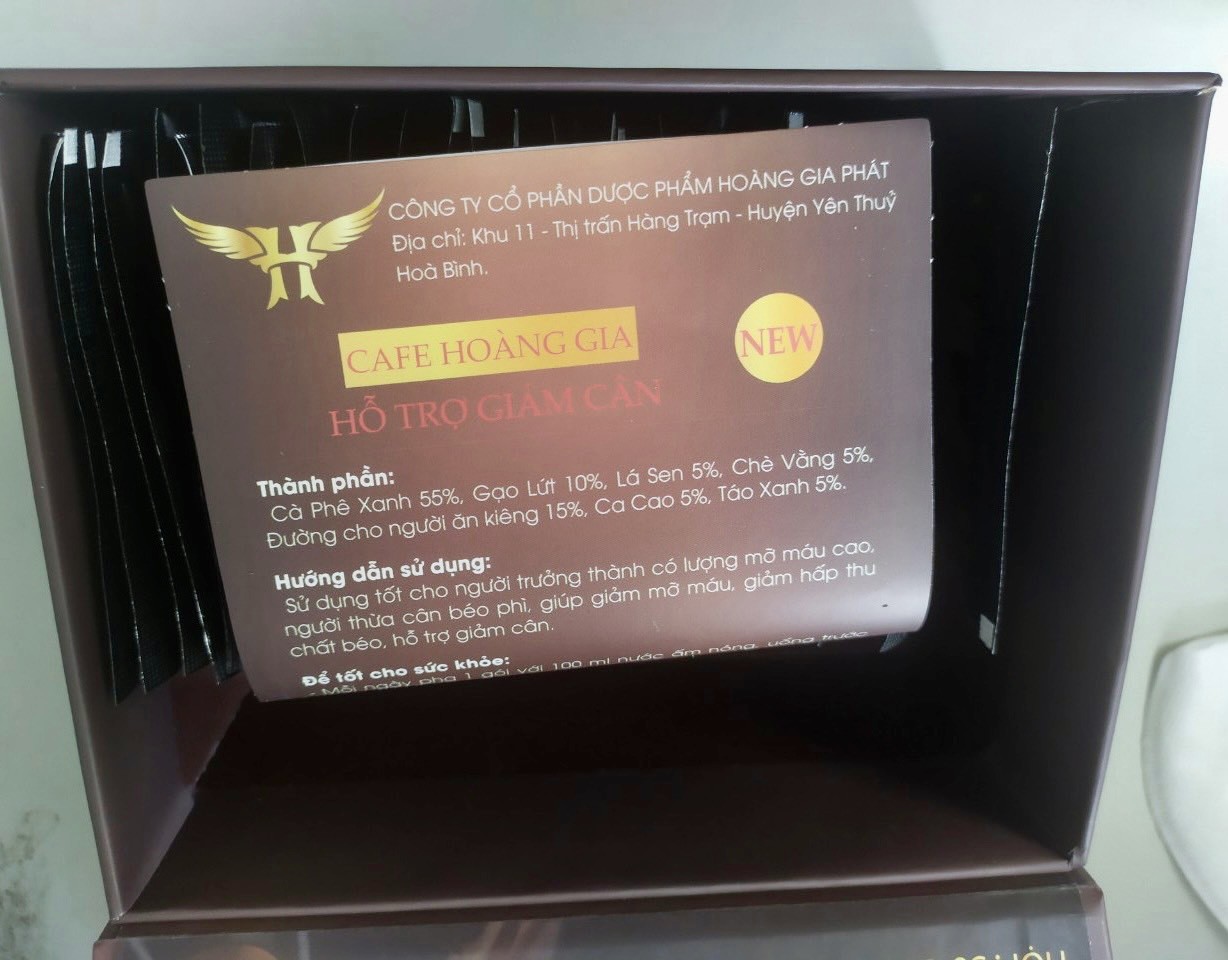 Đơn vị chịu trách nhiệm và phân phối sản phẩm bổ sung cafe Hoàng Gia là Công ty cổ phần dược mỹ phẩm Hoàng Gia Phát, địa chỉ: Khu 11, thị trấn Hàng Trạm, huyện Yên Thuỷ, tỉnh Hoà Bình.