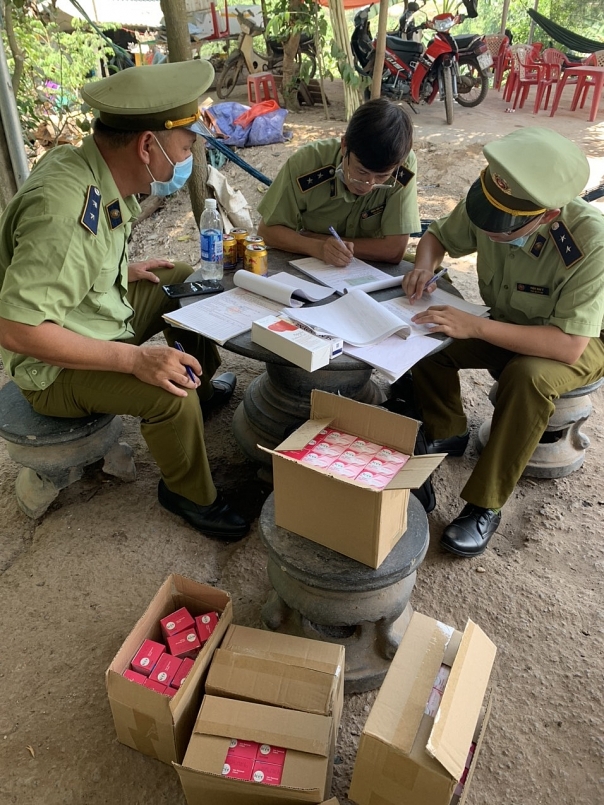 | Lực lượng chức năng kiểm tra hàng vi phạm |