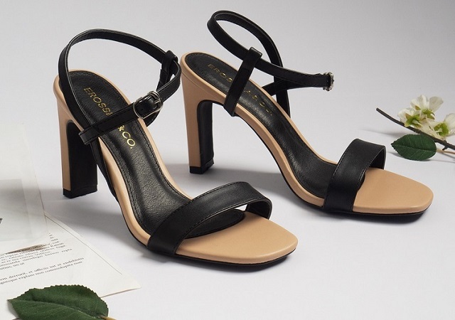 Giày sandal cao gót Erosska có thiết kế mũi vuông, hở ngón. Kiểu dáng sandal cơ bản dễ phối với nhiều kiểu trang phục. Màu sắc trang nhã với hai tông trắng - nâu và đen - nude. Đế giày cao 9 cm, dạng gót vuông. Dây giày thanh mảnh, có thể phối với quần jeans, quần tây hoặc váy, đầm... Giày có giá 249.000 đồng, giảm 41% so với giá gốc.