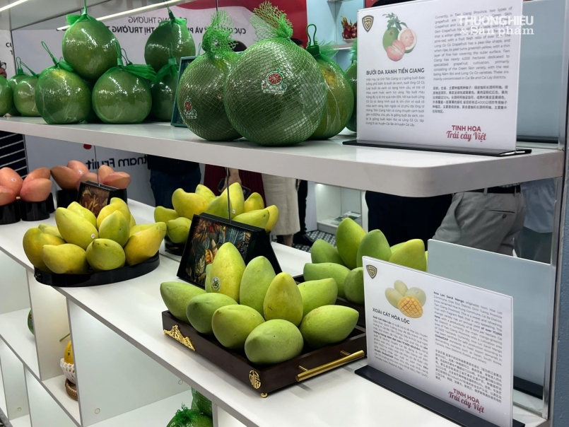 Với chủ đề “Tinh hoa trái cây Việt”, không gian trưng bày được thiết kế sinh động, hiện đại, giới thiệu hàng chục loại trái cây đặc sản tiêu biểu đến từ nhiều vùng miền trên cả nước. Trong đó, nổi bật là các sản phẩm đến từ các địa phương như Tiền Giang, Long An, Bình Thuận, Sơn La…, với những loại trái cây được người tiêu dùng ưa chuộng như xoài cát, sầu riêng, thanh long đỏ, mận hậu…