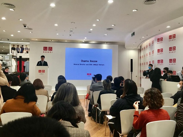 Ông Osamu Ikezoe, Tổng Giám Đốc UNIQLO Việt Nam trả lời họp báo ra mắt UNIQLO Phạm Ngọc Thạch.