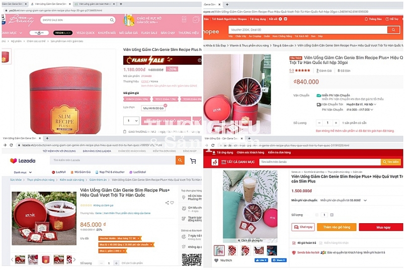 Hàng loạt các trang http://sieuthilamdep.com; https://sieuthisongkhoe.com/; https://www.giamcanantoan.com/ https://myphamgenie.com; https://www.yes24.vn/ thậm chí các trang bán hàng lớn như https://shopee.vn/; https://www.lazada.vn/; https://www.sendo.vn/... cũng quảng cáo và bán sản phẩm này.