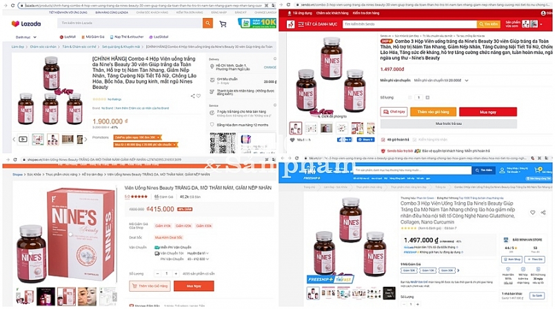 Hiện nay, sản phẩm Viên uống trắng da Nine’s Beauty đang được các sàn thương mại điện tử lớn https://www.lazada.vn/; https://shopee.vn/; https://tiki.vn/; https://www.sendo.vn/ cùng các nhà thuốc, các kênh bán hàng https://chinhhang.ninesbeauty.net/; https://muathuoctietkiem.com/;... quảng cáo với những công dụng như: Giúp trắng da toàn thân, hỗ trợ trị nám tàn nhang, ngăn ngừa ung thư… Giảm nếp nhăn, tăng cường nội tiết tố nữ, chống lão hóa, bốc hỏa, đau bụng kinh, mất ngủ. Ức chế sự hình thành và phát triển của melamin, nám tàn nhang, giúp da khỏe mạnh, rạng rỡ…