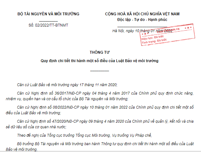 Thông tư 02/2022/TT-BTNMT có hiệu lực từ ngày 10/01/2022.