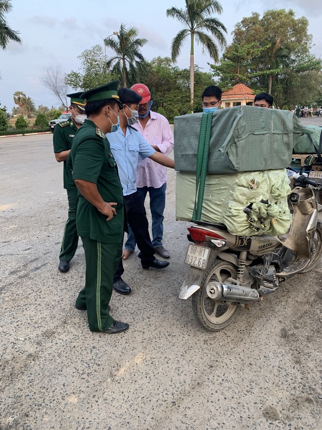 Lực lượng phối hợp phát hiện ông Thành đang chở 2 bao hàng trên xe gắn máy, khai báo là chở mỳ tôm sang Campuchia bán kiếm lời. Tuy nhiên, lực lượng phối hợp đã tiến hành kiểm tra số hàng hóa này và phát hiện ông Lê Văn Thành vận chuyển 4.700 chiếc khẩu trang y tế loại 4 lớp, không có giấy tờ chứng minh nguồn gốc hợp pháp.