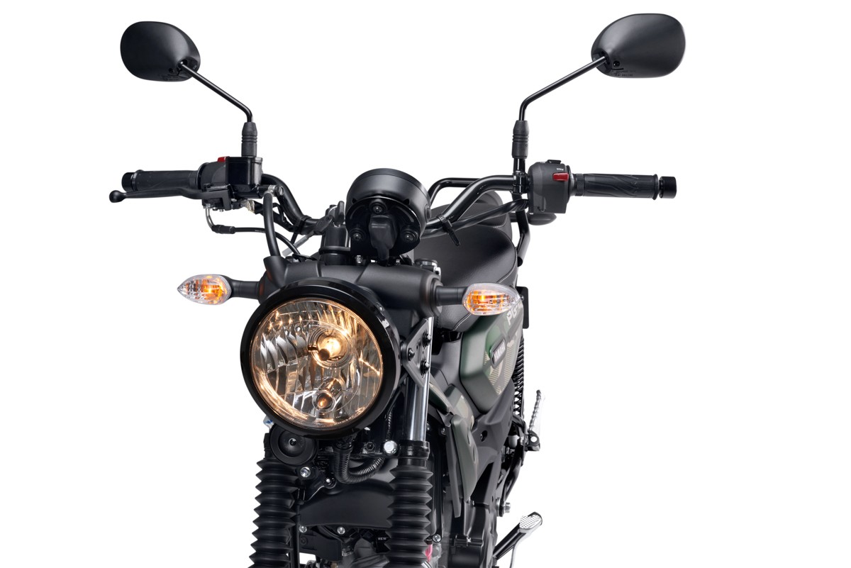 Điểm cộng đầu tiên của PG-1 ABS 2025 nằm ở ngoại hình. Kế thừa ngôn ngữ scrambler gọn gàng và bụi bặm, mẫu xe được khoác lên mình lớp dàn áo mới khỏe khoắn, ốp hông phong cách retro thập niên 1970 cùng cụm đèn tròn cổ điển. Yên đôi tách biệt, phuộc trước chữ H và phuộc sau lộ cơ khí không chỉ gia tăng trải nghiệm lái mà còn tạo dấu ấn về mặt thẩm mỹ.